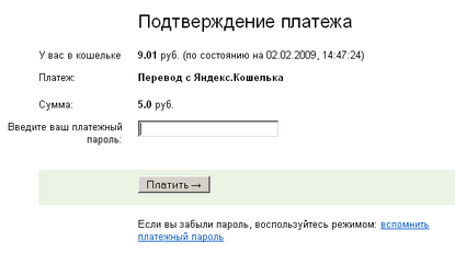 Помните, что, как и в любой другой платежной системе, Ваш платежный пароль в системе можно вводить только на сайте
