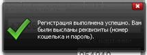 После того, как вы нажали на кнопку «Зарегистрироваться», вам будут высланы реквизиты кошелька (12ти-значный номер кошелька и пароль) на указанный адрес электронной почты или в SMS-сообщении на указанный вами номер сотового телефона.